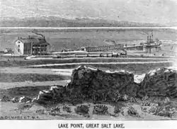 Early railroading was very difficult with many smaller railroads ultimately folding and becoming part of larger railroad companies. On September 16, 1877 the Utah Western Railway completed its initial buildout to receive freight from Stockton, Utah, but the company was losing money.[26] It ultimately sold under foreclosure on November 3, 1880 and rebranded into the Utah & Nevada Railway with further consolidation and renaming in its future. Operating a successful resort on the Great Salt Lake was perhaps just as difficult of an endeavor. The Lake Point Resort had to contend with demand for its product becoming too large for its scale. And thus competition with a newer and larger resorts further up the eastern shore. The second challenge it had to face was drastically varying lake levels that left the facilities far away from the water's edge.