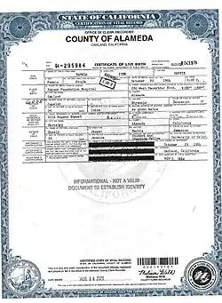 - ^ a b Debolt, David (August 18, 2020). "Here's Kamala Harris' birth certificate. Scholars say there's no VP eligibility debate". The Mercury News. San Jose, California. Archived from the original on February 17, 2021. Retrieved November 27, 2021.