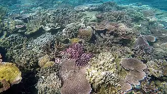 The Eastern Indo-Pacific is a biogeographic region of the Earth's seas, comprising the tropical waters around island groups in the central Pacific Ocean. It includes most of Polynesia, except for New Zealand and the Kermadec Islands. It also includes the Marshall Islands and Kiribati from Micronesia. It adjoins the Central Indo-Pacific realm to the west, which encompasses Melanesia and the other island groups of Micronesia.[1]