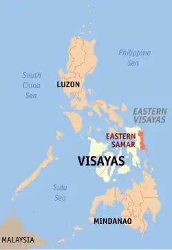 Eastern Samar's at-large congressional district is the sole congressional district of the Philippines in the province of Eastern Samar. Also known as Eastern Samar's lone district, it has been represented in the House of Representatives of the Philippines since 1965.[3] It first elected a representative provincewide at-large for the 6th Congress of the Third Philippine Republic following its creation and that of Northern Samar as regular provinces separate from Samar under Republic Act No. 4221 on June 19, 1965.[4] It has remained a single-member district for the House of Representatives as well as the Fourth Philippine Republic parliament known as the Regular Batasang Pambansa from 1984 to 1986.[3]