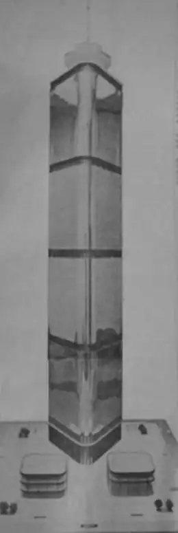Eaton's / John Maryon Tower was a proposed supertall 140-storey office skyscraper, to be built in Toronto, Ontario, Canada.[1][2] In 1971, Eaton's was to partner with a developer named John Maryon to build a 503 metre[2] tower in the College Park area of Downtown Toronto. With a 183-metre communication mast added to the roof of the triangular glass office tower, the total proposed height was 686 metres. Plans for the tower were cancelled, because building a structure of this height was considered impossible at the time of its planning. The skyscraper was planned two years before the Willis Tower was completed, and five years before the CN Tower was completed. Had the tower been built, it would have been the world's tallest building until 2008, when the Burj Khalifa surpassed its planned height.