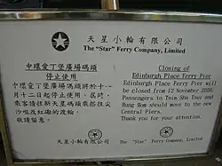 - ^ a b Leslie Kwoh, "Early demolition for old Star Ferry pier" Archived 22 May 2011 at the Wayback Machine, The Standard (Hong Kong), 15 November 2006