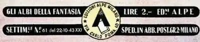 Edizioni Alpe (also known for a time in the late 1940s as Edizioni Subalpino) was an Italian publishing house founded in 1939 and active until the late 1980s. Based in Milan, it published a series of magazines focusing on popular fiction genres—romance, science fiction, mystery—and the genre for which it was best known, comics.