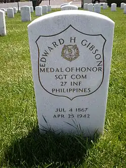 Edward Herrick Gibson[1] (July 4, 1872 – April 25, 1942) was a United States Army Sergeant received the Medal of Honor for actions during the Philippine–American War. He was awarded the Medal for the same action as Corporal Antoine Gaujot. The Medal was received for actions on December 19, 1899, at the Battle of Paye near Mateo during the Philippine–American War. Gibson is buried in Golden Gate National Cemetery in San Bruno, California.[2]