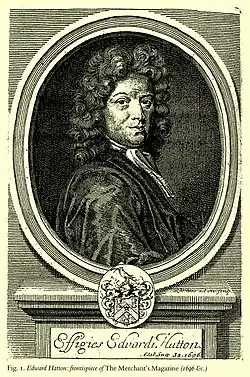 Edward Hatton (c. 1664 – after 1733)[1] was a surveyor for a fire insurance company in London[2][3] who wrote A New View of London: or, an Ample Account of that City, in Two Volumes, or Eight Sections. &c., published anonymously in two octavo volumes 1708. The New View is an important reference to the streets, life and buildings of London not long after the Great Fire of London, 1666.