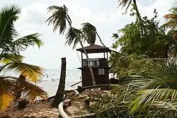 The capital, Castries, was flooded by the storm surge and high seas deposited boulders and fishing boats on the streets. One person drowned in Sarrot after being swept away by a rain-swollen river while trying to recover a cow.[24][25] Flooding was also reported in the town of Dennery where a number of residents had to be evacuated.[22] Nationwide, damage to housing and buildings totaled EC$800,000.[26] In the worst hit areas of the north, closest to Hurricane Dean's path, at least 15 roofs were blown off. Two small waterfront houses were completely destroyed in the town of Gros Islet. The heavy seas also sunk or damaged several boats[27] and damaged coastal roads, in some places eroding the land itself.[28] Coastal damage was estimated at $700,000.[26]