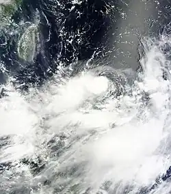 On January 11, Tropical Depression Bising developed east of the Philippines.[7][8][9] Bising caused moderate to heavy rains across Bicol Region, Eastern Visayas, Central Visayas and Mindanao.[10] More than 17,000 people were affected by heavy rains caused by Bising. About 229 passengers were stranded in Bicol. The NDRRMC had reported that no casualties were confirmed and damages were estimated at PhP 1.5 million (US$34,000) due to Bising.[11][12]