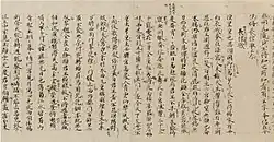 The Kanazawa edition is a copy of Egaku's original document. Kept initially at the Kanazawa library founded in the Kamakura period, the Kanazawa edition is no longer a complete copy.[17] The Kanazawa edition preserves the original form of the "Collected Works of Bai Juyi" as revised by Bai Juyi himself. This edition also has Egaku's annotated notes, which describe the historical circumstances facing Egaku when he was copying the text.