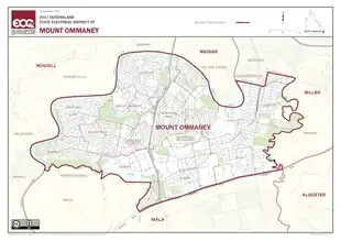Mount Ommaney is an electoral district of the Legislative Assembly in the Australian state of Queensland. It was created with the 1992 redistribution.[1]