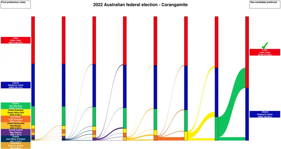 - ^ Corangamite, VIC, 2022 Tally Room, Australian Electoral Commission.