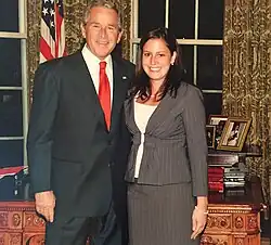 After graduating from Harvard, Stefanik joined the George W. Bush administration[26] as a staff member for the U.S. Domestic Policy Council.[27] Stefanik later worked in the office of Joshua Bolten, the White House chief of staff.[27] In 2009, she founded the blog "American Maggie", a platform to promote the views of "conservative and Republican women". The blog was named after onetime British prime minister Margaret Thatcher.[23]