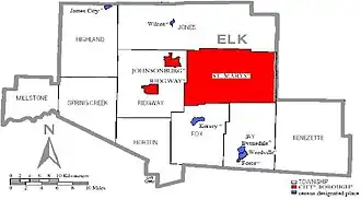 - ^ "2020 CENSUS - SCHOOL DISTRICT REFERENCE MAP: Elk County, PA" (PDF). U.S. Census Bureau. Retrieved July 23, 2024. - Text list