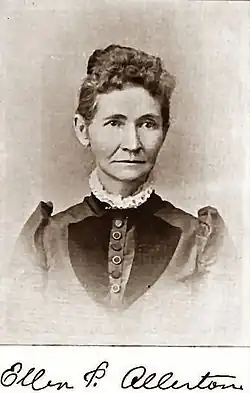 Ellen Palmer was born in Centerville, New York, the youngest and only daughter among a family of eight children raised by William Palmer and his second wife, Eleanor Knickerbocker. Her father, a farmer, was born in East Guilford, Vermont on November 1, 1786, and her mother, a descendant of Dutch pioneers, on July 10, 1792, at Salisbury, Connecticut. Before she could read or write, Allerton was said to have had the ability to compose poems in her head and later recite them from memory.[1][2][3]