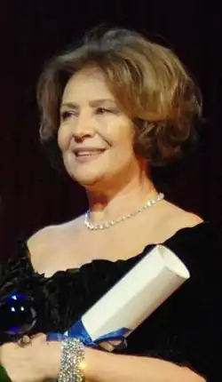 Emília Vášáryová, Doctor Artis Dramaticae (hon.) (Slovak pronunciation: [ˈemiːlija ˈʋaːʂarijɔʋa]; born 18 May 1942)[2] is a Slovak stage and screen actress, whom Variety and other publications refer to as the "First Lady of Slovak Theater".[3][4][5] During a career of more than five decades, she has received numerous awards including Meritorious Artist (1978),[6] the Alfréd Radok Award (1996),[7] the Czech Lion Award,[8] the Golden Goblet Award (2008),[9] and a 2010 ELSA award from the Czech Film and Television Academy (2010).[10] Because her younger sister is former diplomat Magdaléna Vášáryová,[11] the daily newspaper iDNES said fans consider her an "Honorary Consul of Czech and Slovak Relations".[12]