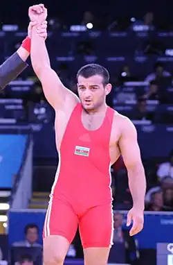 Emin Ahmadov (born 6 October 1986, Baku)[1][2] is an Azerbaijani wrestler. He won the bronze medal at the 2012 Summer Olympics in the Greco-Roman men's 74 kg event. Along the way he beat Neven Zugaj and Zurab Datunashvili, before losing to Arsen Julfalakyan in the semi-final.[3] Because Julfalakyan reached the final, Ahmadov was a participant in the bronze medal repêchage, where he beat Aliaksandr Kikiniou in his bronze medal match.[3]