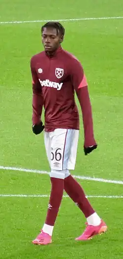 ![]() Longelo warming up for West Ham United in 2021 | |||