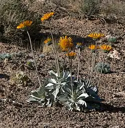 Enceliopsis argophylla, commonly known as the silverleaf sunray,[2] is a North American species of flowering plant in the family Asteraceae. Other common names include nakedstem sunray and naked-stemmed daisy. It is native to the southwestern United States: Arizona (Mohave County), Nevada (Clark County), and Utah (Washington County),[3] and can be seen a short distance east of Las Vegas, Nevada.[2]