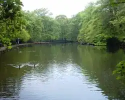 Endcliffe Park is a large park in the city of Sheffield, South Yorkshire, England. The park was opened in 1887 to commemorate the Jubilee of Queen Victoria. When travelling West from the city centre it is the first in a series of parks and green spaces, known collectively as the Porter Valley Parks, all of which lie along the course of the Porter Brook. The next park in the sequence is Bingham Park, separated from Endcliffe Park by Rustlings Road.[1] In 1924 Patrick Abercrombie said of the parks, "The Porter Brook Parkway, consisting as it does of a string of contiguous open spaces, is the finest example to be found in this country of a radial park strip, an elongated open space, leading from a built-up part of the city direct into the country, the land occupied being a river valley and so for the greater part unsuitable for building."[1]