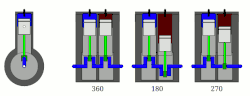 - 180° crankshaft: This configuration has primary balance but an uneven firing order and a rocking couple;[5] also, the secondary imbalances are half as strong (and at twice the frequency) compared with a 360° straight-twin engine.