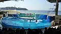 It had the largest dolphin pool in Asia at the time, with a surface area of 1,000 square meters, a water volume of 5,000,000 litres (1,321,000 US gal), and a depth of 6 metres (20 ft).[7] The dolphin pool at Marineland uses an open sand filtration system and raw water is seawater taken from the sea in front of the aquarium.[7] It was originally built to house minke whales and was tentatively named the "Great Whale Release Pond" during construction, but it was not possible to secure minke whales by the time of its opening at the time, and it was decided to house Pacific white-sided dolphin, bottlenose dolphin and Risso's dolphin.
