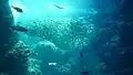 The aquarium is centered around the Sagami Bay Tank, which reproduces the undersea environment of Sagami Bay, with tanks lined up for display at different depths, from shallow water to deep sea.[11]