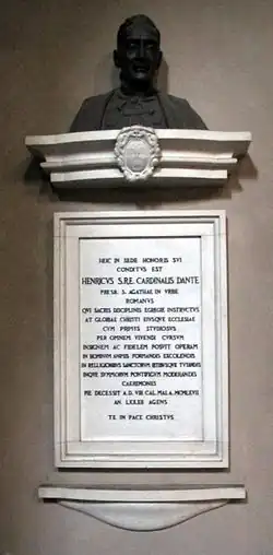 Enrico Dante (5 July 1884 – 24 April 1967) was an Italian cardinal of the Roman Catholic Church. He served as Papal Master of Ceremonies from 1947 until his death, and was elevated to the cardinalate in 1965.