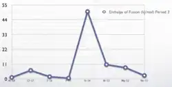 The enthalpy of fusion is almost always a positive quantity; helium is the only known exception.[1] Helium-3 has a negative enthalpy of fusion at temperatures below 0.3 K. Helium-4 also has a very slightly negative enthalpy of fusion below 0.77 K (−272.380 °C). This means that, at appropriate constant pressures, these substances freeze with the addition of heat.[2] In the case of 4He, this pressure range is between 24.992 and 25.00 atm (2,533 kPa).[3]