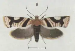 - ^ a b c d e f g Edward Meyrick (May 1883). "Descriptions of New Zealand Microlepidoptera. I and II. Crambidae and Tortricina". Transactions and Proceedings of the New Zealand Institute. 15: 46. ISSN 1176-6158. Wikidata Q111013914 – via Biodiversity Heritage Library.