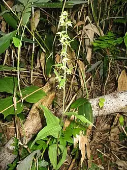 Epipactis papillosa is an orchid from the genus Epipactis. Epipactis papillosa is found from the Russia Far East (Kamchatka, Sakhalin, Primorye, Kuril Islands, Khabarovsk), northeastern China (Liaoning), Korea and Japan.[2] It grows 30โ70 cm tall and has five to seven leaves. It blooms in the fall with 10-20 pale green flowers.[3] It grows in forests.[3]
