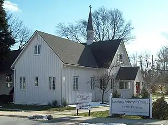 The Epiphany Chapel and Church House is a historic church at Odenton, Anne Arundel County, Maryland, United States. It is a two-story gable-roofed frame building constructed in 1918 and laid out in cruciform plan in the Arts and Crafts style. It is significant for its association with the mobilization of the United States military for World War I, since it was constructed adjacent to Camp Meade (now known as Fort George G. Meade), a major training camp for troops bound for the Western Front in Europe. Its design was an early work of the prominent Baltimore architect Riggin T. Buckler (1882-1955) of the partnership/firm of Sill, Buckler & Fenhagen.[2]