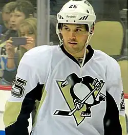 Eric Tangradi (born February 10, 1989) is an American former professional ice hockey left winger. He played for the Pittsburgh Penguins, Winnipeg Jets, Montreal Canadiens, Detroit Red Wings, New Jersey Devils, and Barys Nur-Sultan in the Kontinental Hockey League (KHL). Tangradi was drafted 42nd overall in the 2nd round of the 2007 NHL Entry Draft by the Anaheim Ducks.[2][3][4][5]