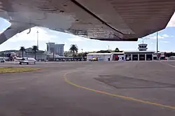 Eros is a busy hub of general aviation and some commercial aviation, which includes Wilderness Air,[7] Bay Air, Westair Aviation, Scenic Air. The airport is the host to commercial, private, and scheduled traffic ranging from high performance jet aircraft to Cessna 152 trainers. The majority of traffic comes from the general aviation charter market, consisting mainly of the Cessna 210 aircraft, which is the most commonly used aircraft for charter and fly-in safaris in Namibia. Scenic-Air operates a regular charter service from Eros Airport, using Cessna Centurion equipment.[8] The airport handles approximately 150 to 200 movements per day (around 50,000 per year). In 2016, the airport served 74,356 passengers.[9] Wilderness Air offers regular transfers to Maun in Botswana,[10] Livingstone and Lusaka in Zambia, and Victoria Falls in Zimbabwe.[11] In April 2018, Westair Aviation scheduled passenger services to 6 new destinations in Namibia and South Africa.[12] In late July 2019 Air Namibia, which ceased operations in February 2021, moved its Lüderitz and Oranjemund operations from Hosea Kutako International Airport to Eros.[13] It is also home to the Gambian Government Air Transport Unit.[14]