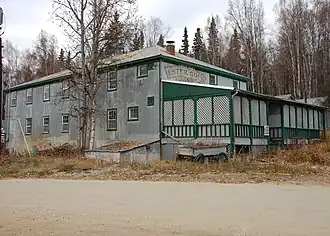 The Berry Post Office moved in 1910 from near the Berry brothers' claim about two miles downstream from Ester City into J.C. Kinney's general store in Ester. The post office retained the name of Berry until 1965, when it was finally changed to that of the town it had been in for 55 years.[6] In the mid-1920s, the Fairbanks Exploration Company began buying claims on Ester Creek, started operations in 1929, and in 1933 built a mess hall for their camp in Ester. The buildings are now a historic landmark used until 2008 as a tourist attraction, restaurant, and hotel. The F.E. Company revitalized the town, reshaping it to do large-scale open-pit mining using enormous floating dredges and draglines. In the process, much of the original sites of Berry and Ester were removed.