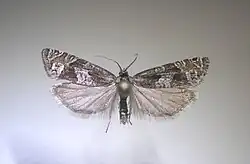 The wingspan is 18–20 mm. Adults are on wing from June to July.