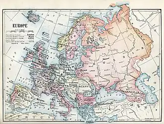 The Age of Enlightenment was a powerful intellectual movement during the 18th century promoting scientific and reason-based thoughts.[163][164][165] Discontent with the aristocracy and clergy's monopoly on political power in France resulted in the French Revolution, and the establishment of the First Republic as a result of which the monarchy and many of the nobility perished during the initial reign of terror.[166] Napoleon Bonaparte rose to power in the aftermath of the French Revolution, and established the First French Empire that, during the Napoleonic Wars, grew to encompass large parts of Europe before collapsing in 1815 with the Battle of Waterloo.[167][168] Napoleonic rule resulted in the further dissemination of the ideals of the French Revolution, including that of the nation state, as well as the widespread adoption of the French models of administration, law and education.[169][170][171] The Congress of Vienna, convened after Napoleon's downfall, established a new balance of power in Europe centred on the five "great powers": the UK, France, Prussia, Austria, and Russia.[172] This balance would remain in place until the Revolutions of 1848, during which liberal uprisings affected all of Europe except for Russia and the UK. These revolutions were eventually put down by conservative elements and few reforms resulted.[173] The year 1859 saw the unification of Romania, as a nation state, from smaller principalities. In 1867, the Austro-Hungarian empire was formed; 1871 saw the unifications of both Italy and Germany as nation-states from smaller principalities.[174]