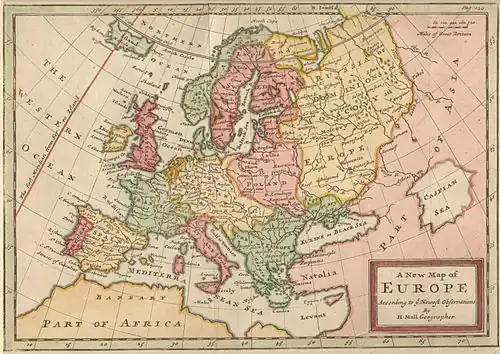 Around 1715, Herman Moll produced a map showing the northern part of the Ob River and the Irtysh River, a major tributary of the Ob, as components of a series of partly joined waterways taking the boundary between Europe and Asia from the Turkish Straits, and the Don River all the way to the Arctic Ocean. In 1721, he produced a more up to date map that was easier to read. However, his proposal to adhere to major rivers as the line of demarcation was never taken up by other geographers who were beginning to move away from the idea of water boundaries as the only legitimate divides between Europe and Asia.