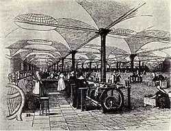The Industrial Revolution started in Great Britain in the last part of the 18th century and spread throughout Europe. The invention and implementation of new technologies resulted in rapid urban growth, mass employment and the rise of a new working class.[176] Reforms in social and economic spheres followed, including the first laws on child labour, the legalisation of trade unions,[177] and the abolition of slavery.[178] In Britain, the Public Health Act of 1875 was passed, which significantly improved living conditions in many British cities.[179] Europe's population increased from about 100 million in 1700 to 400 million by 1900.[180] The last major famine recorded in Western Europe, the Great Famine of Ireland, caused death and mass emigration of millions of Irish people.[181] In the 19th century, 70 million people left Europe in migrations to various European colonies abroad and to the United States.[182] The industrial revolution also led to large population growth, and the share of the world population living in Europe reached a peak of slightly above 25% around the year 1913.[183][184]