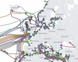 To date, no attack on submarine internet cables has been attributed to a State. However, the attack of the gas pipeline Nord Stream II in 2022, presumably United States-sponsored, underlines that this kind of sabotage is possible. Overall, the shadow of these attacks is part of hybrid threats. The EU defines them as: “when actors seek to exploit the vulnerabilities of the EU to their own advantage by using a mixture of measures (i.e. diplomatic, military, economic, technological) while remaining below the threshold of formal warfare".[36] The greatest fear is hence that submarine internet cables vandalism might be used as part of a coordinate attack targeting other key infrastructures, like cyberspace. Despite Sweden and Denmark's lack of finding a culprit, Russia is often thought to have been involved in the Nords Stream sabotage due to the tensions with the EU and the presence of Russian ships around it days prior.[37] Russia has previously been associated with strategies such as the spread of fake news,[38] the sponsor of cyberattacks,[39] and navigation close to key EU infrastructures.[40] For example, in February 2022, Russia did a military exercise at the border of Ireland's EEZ, near undersea internet cables. An Irish officer notes "the intention is not to cut the cables but to send a message [to NATO] that they can cut them anytime they want".[34] However, the principle of hybrid threats is that attacks, when they happen, are non-attributable.