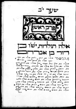 Shem Tob's Hebrew Gospel of Matthew is the oldest extant Hebrew version of the Gospel of Matthew. It was included in the 14th-century work Eben Boḥan (The Touchstone)[1] by the Spanish Jewish Rabbi Shem-Tov ben Isaac ben Shaprut. George Howard[2] has argued that Shem Tov's Matthew comes from a much earlier Hebrew text that was later translated into Greek and other languages. A characteristic feature of this Hebrew gospel is the appearance in 20 places of השם (HaShem, "the Name"), in the abbreviated form ה״, where the Gospel of Matthew has Κύριος ("the Lord").