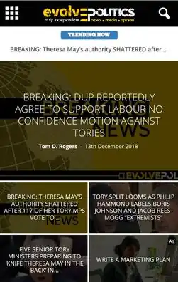 ![]() Screenshot of Evolve Politics homepage on mobile device | |