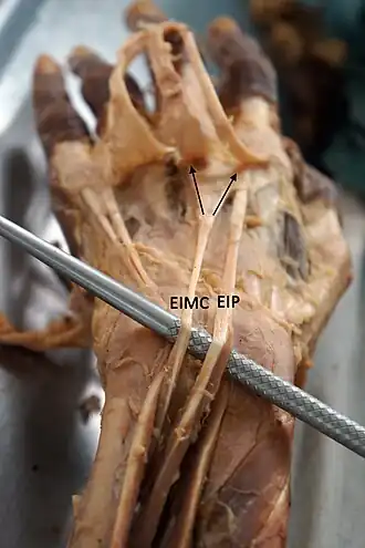 ![]() Extensor indicis et medii communis (EIMC) and extensor indicis proprius (EIP) | |