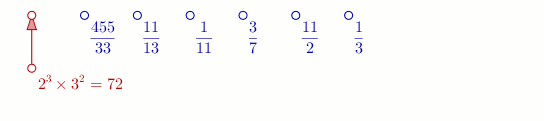 - repeat this rule until no fraction in the list produces an integer when multiplied by n, then halt.
