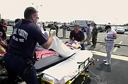 Fairfax County Fire and Rescue also sponsors one of the nation's Urban Search and Rescue response teams. Named 'Virginia Task Force 1,' the team is composed of approximately 200 specially trained career and volunteer fire and rescue personnel, with expertise in the rescue of victims from collapsed structures, following a natural or man-made catastrophic event.[5] The team is composed of emergency managers and planners, physicians and paramedics and includes specialists in the fields of structural engineering, heavy rigging, collapse rescue, logistics, hazardous materials, communications, canine operations, and technical search. Virginia Task Force 1 has partnerships with the Department of Homeland Security/Federal Emergency Management Agency for domestic response and the United States Agency for International Development/Office of U.S. Foreign Disaster Assistance during international missions.[5] As a part of the Fairfax County Fire and Rescue Department, the task force maintains constant operational readiness as a local resource for residents of Fairfax County and surrounding jurisdictions.