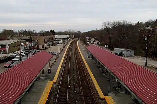 A major renovation of Fairmount station began in early 2003.[7] The $7 million project, which was completed in 2004-05, added 1-car-length high platforms and ramps to the Fairmount Avenue overpass to make the station handicapped accessible.[8][9] During the construction, new temporary platforms were built slightly northeast of the station.