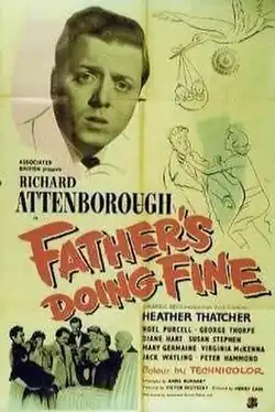 Father's Doing Fine is a 1952 British comedy film directed by Henry Cass and starring Richard Attenborough, Heather Thatcher, and Noel Purcell, and featuring Sid James.[2][3] It was written by Anne Burnaby based on the 1948 play Little Lambs Eat Ivy by Noel Langley.[4]