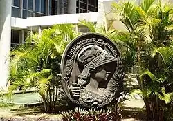 The university manages an ambitious program for extension courses, consisting mostly in providing full-time education to financially debilitated non-students of varying education backgrounds.[29] Besides, the UFRJ contributes heavily to Rio de Janeiro's public health with its nine college hospitals, providing for over one thousand vacancies, and its deep integration with the State's health treatment network.[30] In 2010, the institution achieved a "very good" evaluation and a maximum score in the Ministry of Education's General Index of College Courses ("Índice Geral de Cursos", or IGC in Portuguese).[31][32] Its clear emphasis on research alludes to the personal motto of one of its most famous and distinguished scientists:[33]