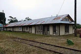 The area was first named Singley Station in 1885 after George Singley who ran a ferry across the Eel River from 1876 to 1889.[6] As soon as a train station was built, a stage ran on a regular schedule to connect to the train. By 1891, the ferry was pulled by a steam winch and a seasonal pontoon bridge was added in the summer.[7]
