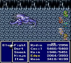 It is revealed that Rosa, Cecil's love interest, had followed him and is extremely ill with a fever. Soon after this, Cecil and Rydia meet Tellah, who is going to Damcyan Castle to retrieve his eloping daughter, Anna.[25] However, Anna is killed when the Red Wings bomb the castle. Edward, Anna's lover and the prince of Damcyan, explains that the Red Wings' new commander, Golbez, did this to steal the Fire Crystal for Baron as they had stolen the Water Crystal from Mysidia.[26] Tellah leaves the party to exact revenge on Golbez for Anna's death.[27] After finding a cure for Rosa, the party decides to go to Fabul to protect the Wind Crystal. On the way there they meet Master Yang, a warrior monk serviced to the kingdom and the protection of the crystal. The Red Wings attack Fabul, and Kain reappears as one of Golbez's servants. He attacks and defeats Cecil; when Rosa intervenes, Golbez kidnaps her and Kain takes the crystal.[28] On the way back to Baron, the party is attacked by Leviathan and separated.