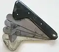 The earliest known examples are made of bronze with a myrtle-leaf shape to the blade. In the 17th and 18th centuries, the German Fliete and French flamettes were developed. These devices with their right-angle blades are the earliest forms of what collectors now refer to as the fleam.[3]