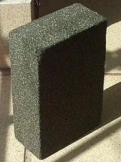 The product that is known today as Foamglas cellular glass insulation, was developed by Pittsburgh Corning and was later acquired by Owens Corning. It is made of cullet, foaming agent, modified additive and foaming accelerator. After fine pulverization and uniform mixing, it is melted at high temperature, foamed and annealed. An inorganic non-metallic glass material, it consists of a large number of uniform bubble structures with a diameter of 1 to 2 mm. Sound-absorbing Foamglas insulation is more than 50% open cell bubbles, and heat-insulating Foamglas is more than 75% closed-cell air bubbles, which can be adjusted according to the requirements of use through changes in production technical parameters.[11] Similar products by other manufacturers are sold as 'cellular glass' or 'foam glass'.